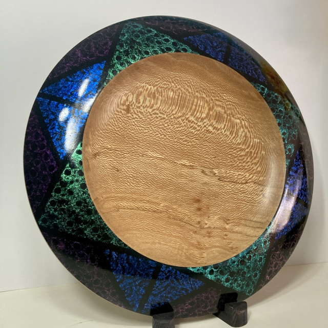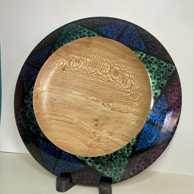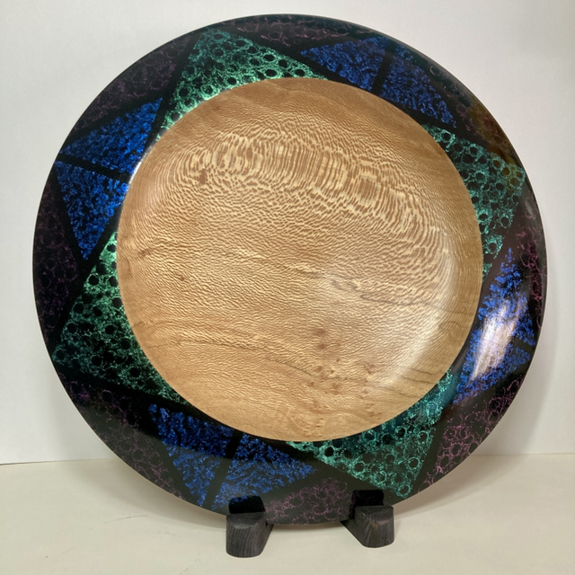 London plane platter with iridescent hand painted finish on rim,