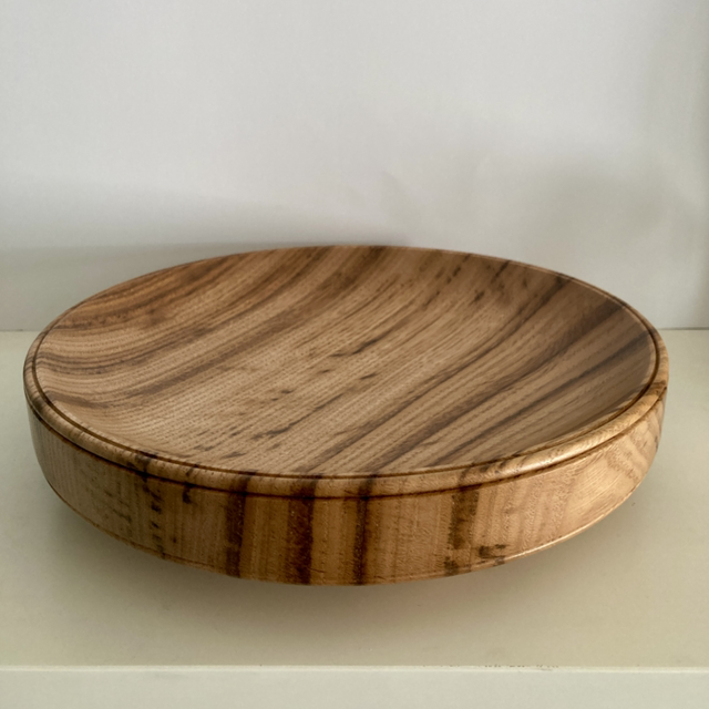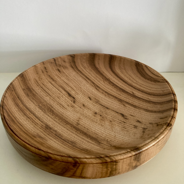 Lathe turned tiger striped sweet chestnut bowl, 10” diameter x 2" high and food safe.beaded detailing to edge.